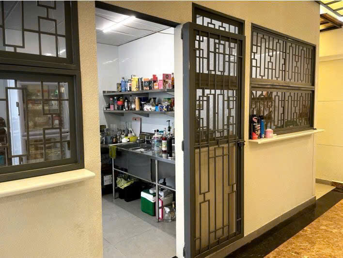 - Khu sân sau đã cải tạo hồ bơi & sân vườn thành khu bếp riêng chuyên nghiệp, tối ưu vận hành nhà hàng