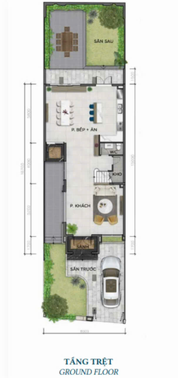 - Diện tích: 8m x 31.25m